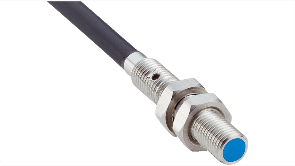 Sensore di prossimità induttivo cilindrico, tecnologia induttiva, PNP, filetto M4 x 0,5, gamma di rilevamento 0,6 mm, tensione di alimentazione 10-30 V CC, corrente di commutazione 100 mA, frequenza di commutazione 5 kHz, grado di protezione IP67, temperatura operativa da -25 a +70 gradi, alloggiamento in acciaio inox V2A, montaggio a filo, comunicazione IO-Link, indicatore visivo di regolazione.