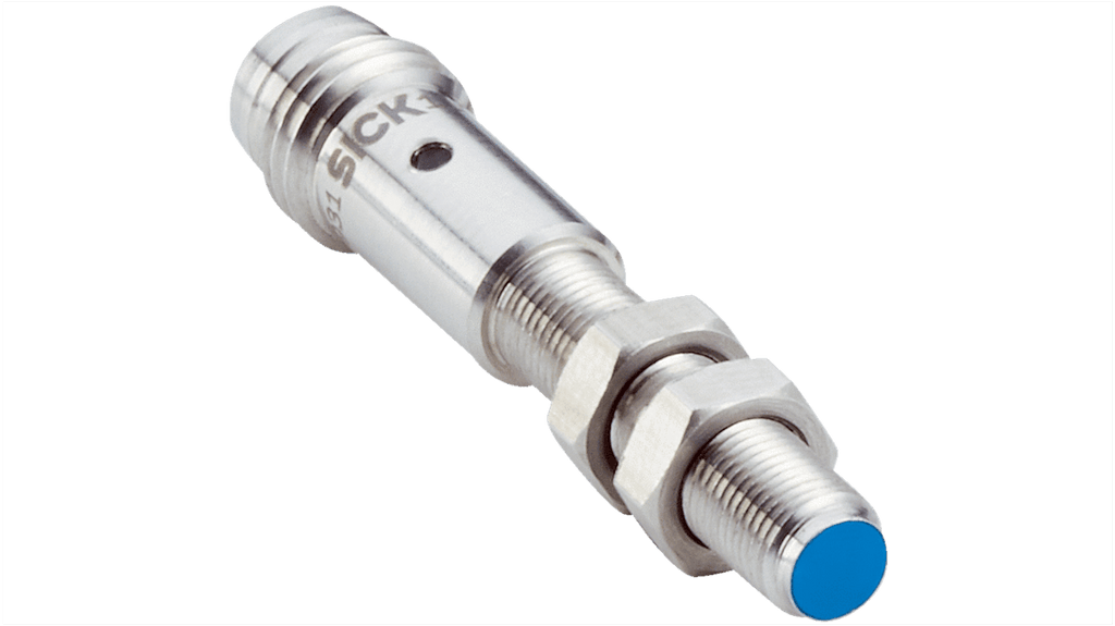Sensore di prossimità induttivo cilindrico, tecnologia PNP, filettatura M5 x 0.5, gamma di rilevamento 0,8 mm, tensione di alimentazione 10-30 V CC, corrente di commutazione 200 mA, frequenza di commutazione massima 5000 Hz, grado di protezione IP67, temperatura operativa da -25 a +70 gradi Celsius, alloggiamento in acciaio inossidabile, montaggio a filo, comunicazione IO-Link, indicatore visivo di regolazione.