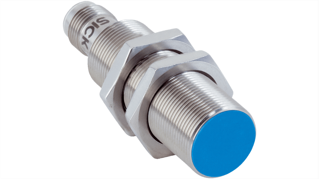 Sensore di prossimità induttivo cilindrico, tecnologia induttiva, filettatura M18 x 1, uscita PNP, gamma di rilevamento 8 mm, tensione di alimentazione 7,2 a 60 V CC, grado di protezione IP68 e IP69K, corrente di commutazione 200 mA, frequenza di commutazione 1 kHz, temperatura operativa da -40 a +100 gradi Celsius, materiale custodia in acciaio inox V2A, montaggio quasi a filo, schermato, protezione da inversione di polarità e sovraccarico.