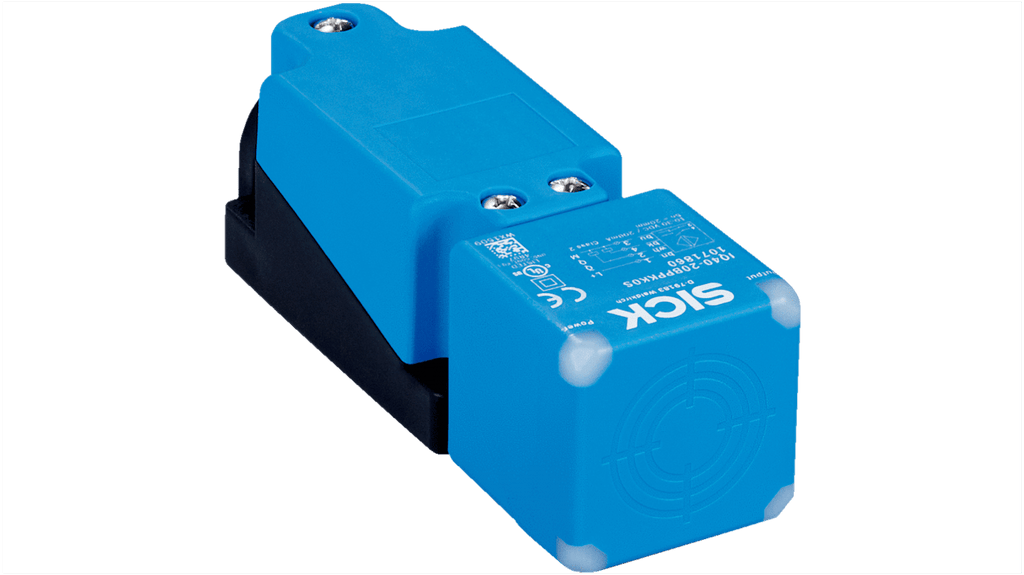 Sensore di prossimità induttivo rettangolare, tecnologia NO, gamma di rilevamento 20 mm, tensione di alimentazione 10-30 V CC, montaggio a filo, grado di protezione IP68, temperatura operativa da -25 a +85 gradi, custodia in plastica, dimensioni 40 mm x 40 mm x 118 mm, corrente di commutazione 100 mA, frequenza di commutazione 150 Hz, protezione da inversione di polarità e sovraccarico. Standard CE, EAC.