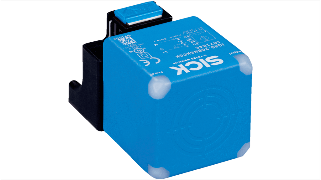 Sensore di prossimità induttivo rettangolare, tecnologia NPN, gamma di rilevamento 40 mm, tensione di alimentazione 10 a 30 V CC, grado di protezione IP 68 e IP 69K, temperatura operativa da -25 a +85 gradi Celsius, corpo in plastica PA 66, montaggio con sistema push-lock, connettore a 4 pin M12, corrente di commutazione 200 mA, frequenza di commutazione 100 Hz, conforme a CE, cULus, EAC.