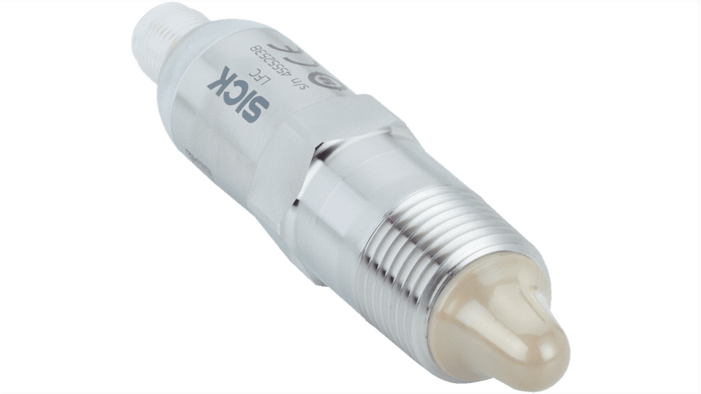 Sensore di livello capacitivo Sick serie LFC, uscita NPN e PNP, corpo in acciaio inox, temperatura operativa da -40 a +70 gradi Celsius, tensione massima in corrente continua da 12 a 35 volt, dimensione filetto M12, pressione massima 25 bar, conforme agli standard CE.