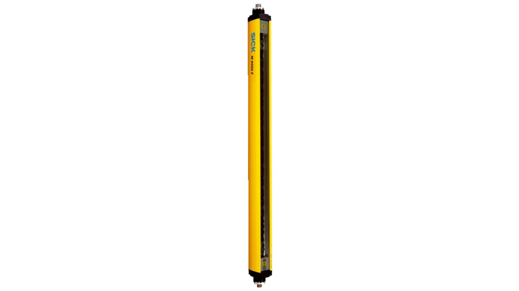 Sensore luminoso di sicurezza, serie M20Z, 2 fasci, separazione fasci 500 mm, campo di scansione fino a 6 m, altezza di protezione 741 mm, tensione di alimentazione 24 V c.c., tempo massimo di risposta 7 ms, connettore maschio M12 a 8 pin, robusto alloggiamento industriale, conforme a SIL1 e PL c, monitoraggio esterno del dispositivo e autotest interno configurabile.