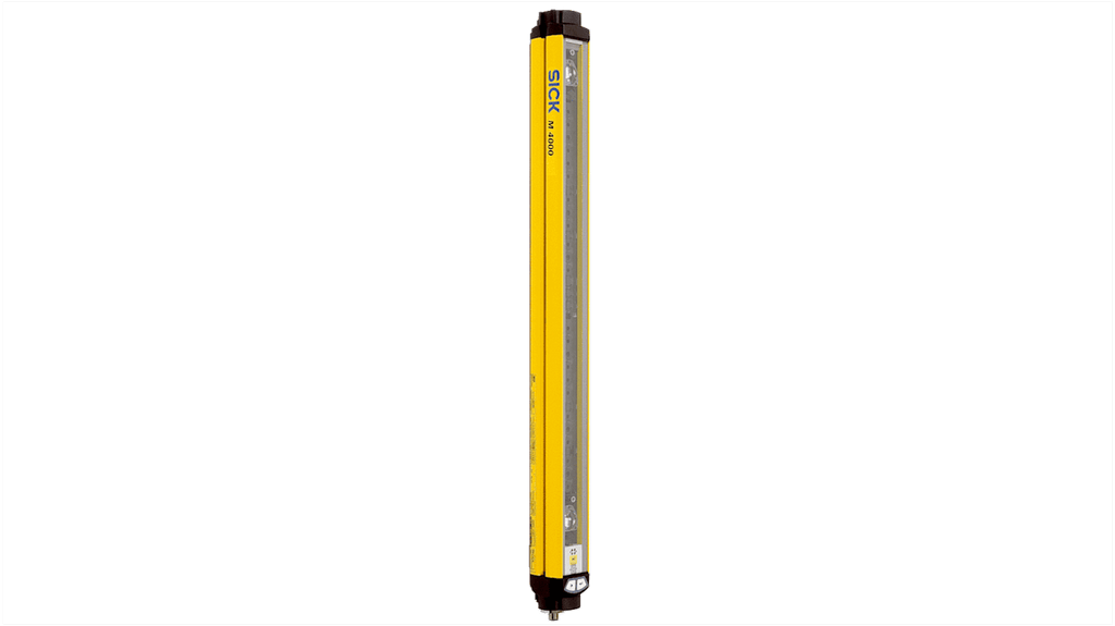 Barriera fotoelettrica a fascio multiplo, serie M40E, 4 fasci, risoluzione 300mm, altezza di protezione 900mm, campo di rilevamento 0.5-70m, tempo di risposta massimo 10ms, tensione di alimentazione 24V c.c., connettore M12, dimensioni 1072x55.5x52mm, robusto alloggiamento con tre scanalature di montaggio, conforme a IEC 61496 Tipo 4, SIL3, PL e.