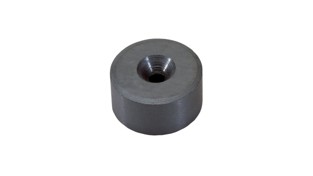 Magnete per uso con sensori, diametro 23 mm, altezza 8 mm, montaggio a pannello con foro per vite a testa piatta M5, materiale in ferrite di bario, temperatura operativa da -40 a +250 gradi Celsius, forma rotonda, progettato per applicazioni di rilevamento magnetico, serie MAG.