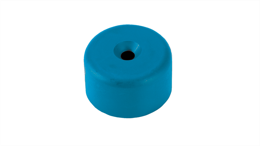 Magnete per uso con sensori magnetici Sick e MPA, tipo accessori, altezza 19,5 mm, diametro 36 mm, foro di montaggio per vite a testa piatta M5, materiale in ferrite di bario con rivestimento in plastica, serie MAG.