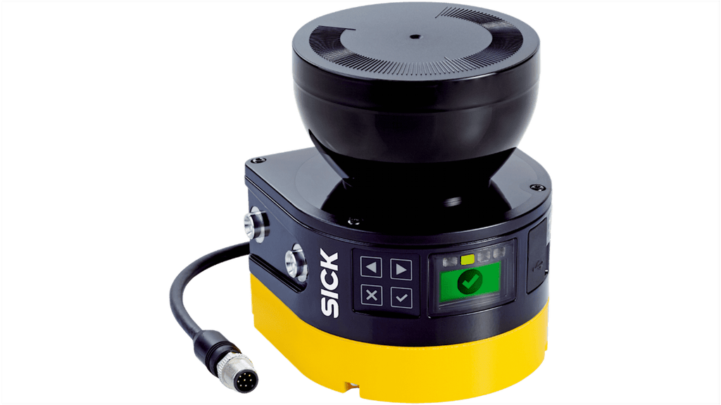 Laser scanner di sicurezza Sick serie MICS3, tecnologia di scansione safeHDDM, campo di protezione fino a 9 m, angolo di scansione 275 gradi, fino a 128 campi configurabili, 8 campi di protezione simultanei, connettività standardizzata, picco lunghezza d'onda 845 nm, tempo massimo di risposta 95 ms, dimensioni 112 x 135,1 x 111,1 mm, applicazione interna, tipo terminale con connettore M12, SIL IEC 61508 livello 2, PL EN ISO 13849-1 categoria d.