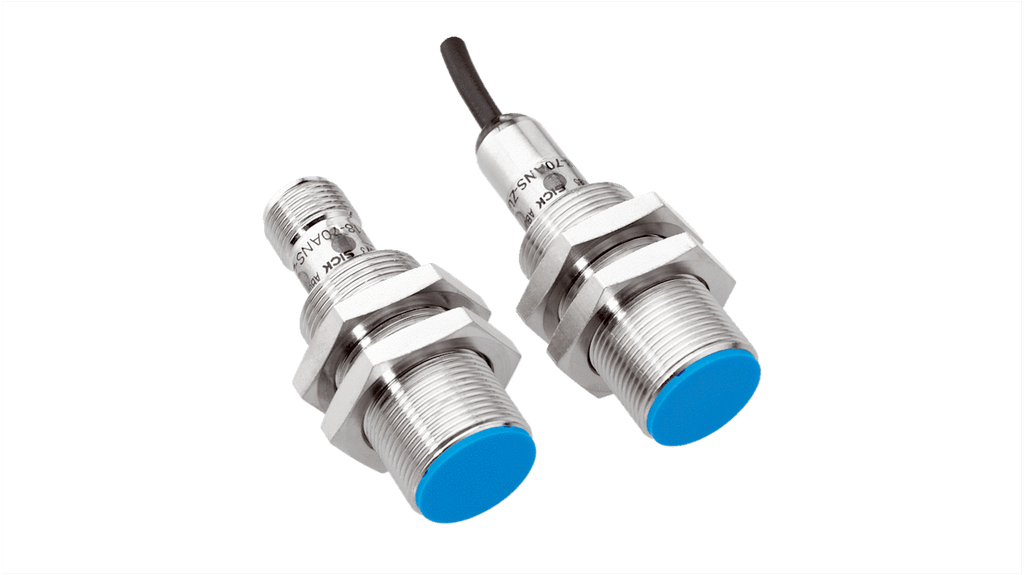 Sensore di prossimità magnetico cilindrico, corrente massima 200mA, tensione massima 30V cc, frequenza di commutazione 5000Hz, grado di protezione IP 67, campo di temperatura da -40°C a +75°C, dimensioni 58 x 18mm, custodia in ottone nichelato, faccia di rilevamento in plastica, rilevamento affidabile di magneti permanenti attraverso materiali non ferromagnetici, configurazione elettrica DC a 3 fili.