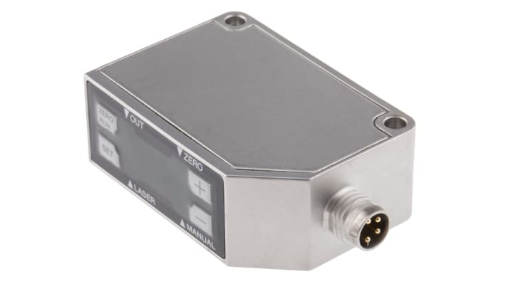 Sensore di distanza rettangolare a soppressione di sfondo, gamma di rilevamento 50 mm a 150 mm, uscita analogica, connettore a 4 pin M8, tensione massima 24V, corrente massima 20 mA, tempo di risposta 2 ms a 16 ms, temperatura operativa da -10°C a +40°C, grado di protezione IP67, custodia in acciaio inox, montaggio a pannello, serie OD Mini.