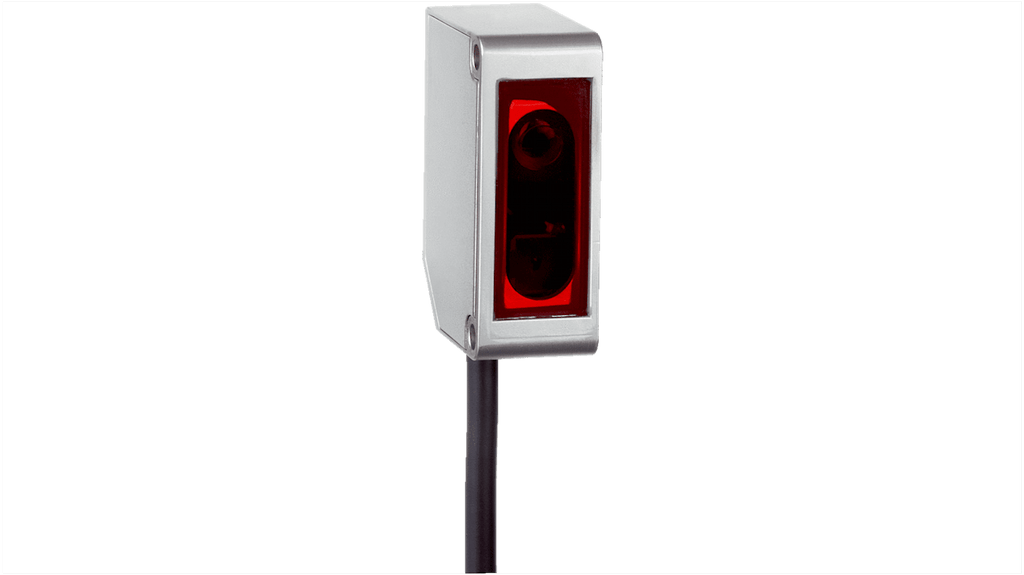 Sensore fotoelettrico rettangolare, rilevamento da 50 a 150 mm, uscita PNP/NPN, tensione massima 24V, corrente massima 20 mA, tempo di risposta 2 ms, grado di protezione IP67, temperatura operativa da -10 a +55 gradi, alloggiamento in metallo, interfaccia RS-485, conforme a CE e EAC, dimensione filetto M12. Codice costruttore OD1-B100H50I25, marchio Sick.