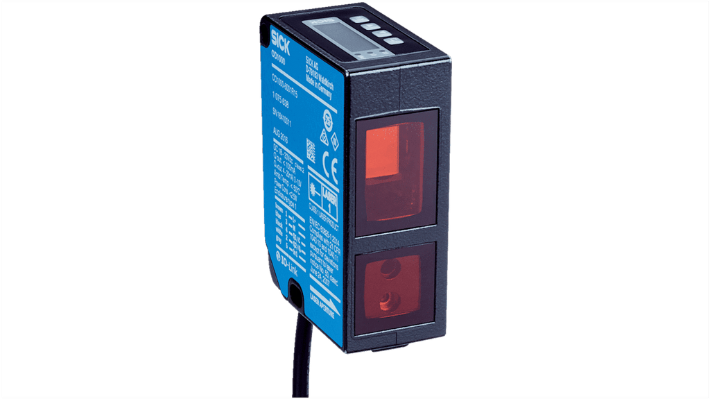 Sensore di distanza rettangolare, rilevamento 200-1000 mm, uscita analogica e digitale, interfaccia IO-Link, robusto alloggiamento in zinco pressofuso, grado di protezione IP65/IP67, tensione massima 30V, corrente massima 20 mA, tempo di risposta 1,5 m/s, temperatura operativa da -10 a +50 gradi, montaggio a pannello, conforme a standard CE e TUV. Codice costruttore OD1000-6001R15, marchio Sick.