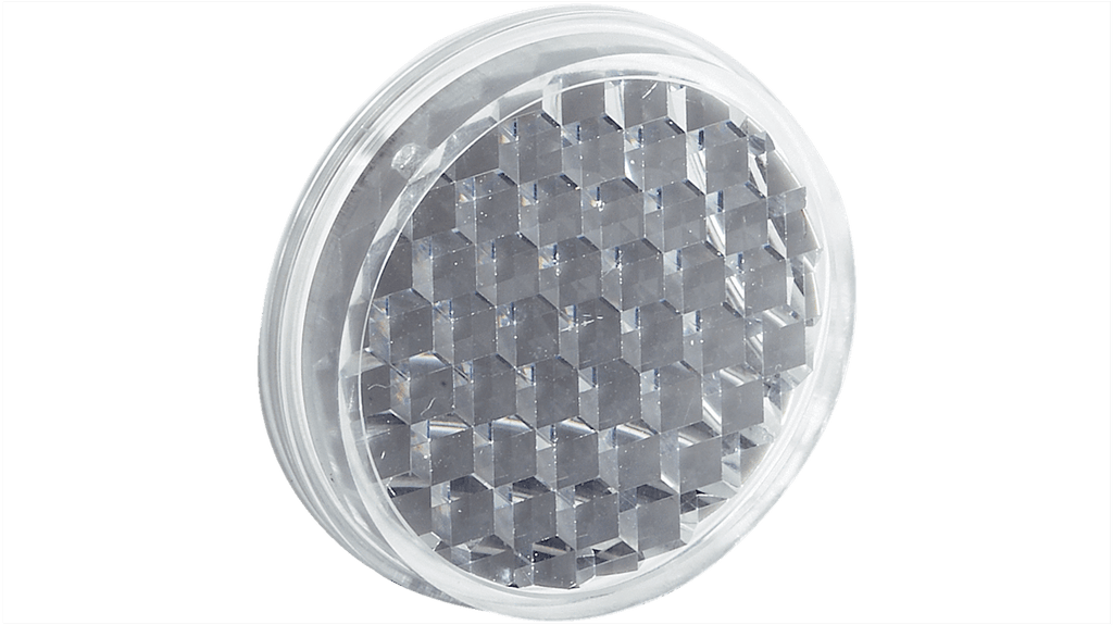 Accessorio a riflessione rotondo, tipo P, montaggio morsettabile. Materiale in PMMA/ABS, temperatura operativa da -20 a +65 gradi Celsius. Prodotto da Sick, codice costruttore P34.