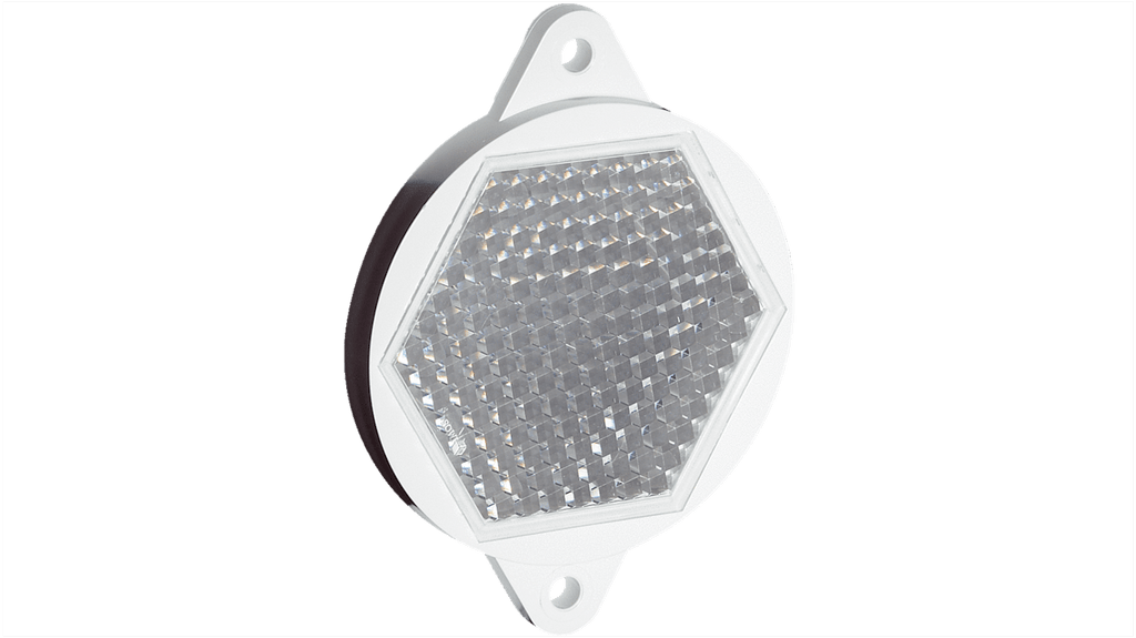 Accessorio a riflessione rotondo, attacco a vite, larghezza tra le piastre 48 mm, materiale PMMA/ABS, tipo di montaggio avvitabile. Range di temperatura operativa da -20 a +65 gradi Celsius. Serie P.