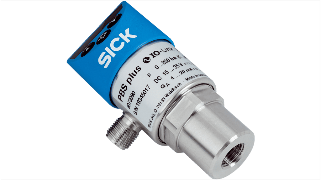 Sensore di pressione relativa. Pressione massima 250 bar, precisione ± 0,5%. Uscite PNP/NPN-NA/NC e analogica 4-20 mA, 0-10 V. Protocollo IO-Link per trasmissione dati. Intervallo di temperatura operativa -20 a +85 gradi Celsius, grado di protezione IP67. Materiale custodia in acciaio inox/plastica, montaggio filettato G1/4. Tempo di risposta 5 ms, corrente massima 600 mA, tensione di alimentazione da 15 a 35 V. Codice costruttore PBS2-RB250SG2SS0NMA0Z.