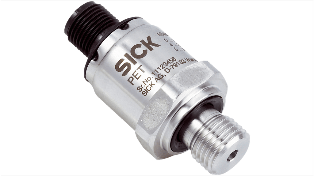 Sensore di pressione relativa, 10bar max, tipo di lettura pressione, pressione minima 0bar, pressione massima 10bar, precisione 1,2%, collegamento al processo G 1/4 A, uscita analogica 4-20 mA, collegamento elettrico connettore rotondo M12, tempo di risposta 2 ms, tensione di alimentazione 8-30 V CC, materiale custodia PBT GF30 e acciaio inox 316L, temperatura operativa da -30 a +100°C, grado di protezione IP67.