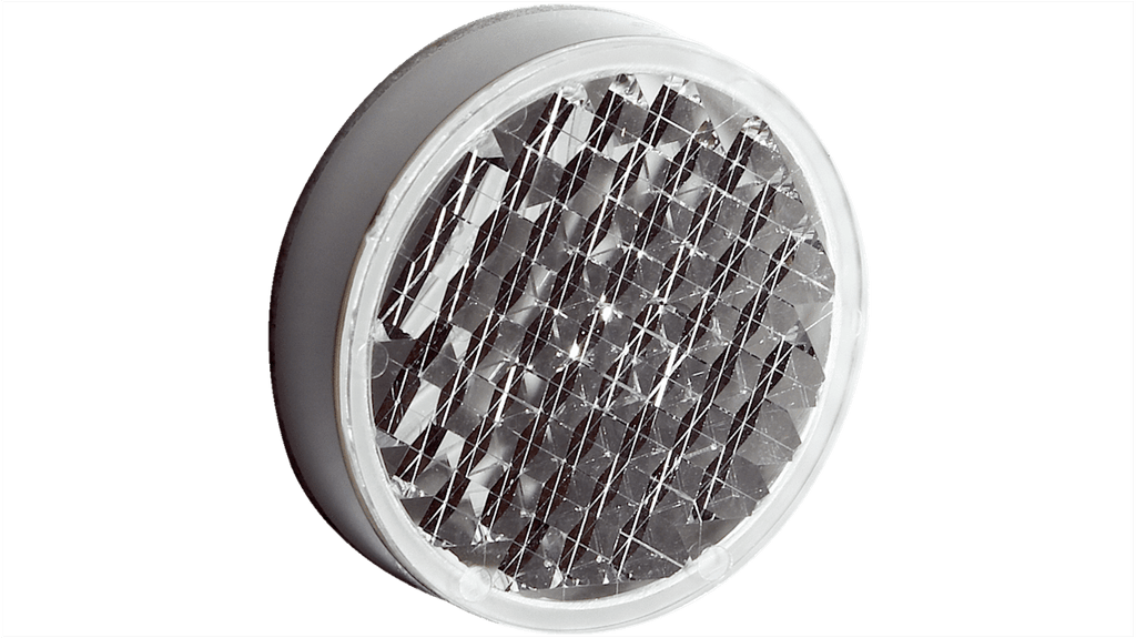 Riflettore rotondo autoadesivo, area riflettente di 23 mm, tipo accessori, materiale PMMA/ABS, serie PL. Progettato per applicazioni industriali, garantisce un montaggio semplice e veloce.