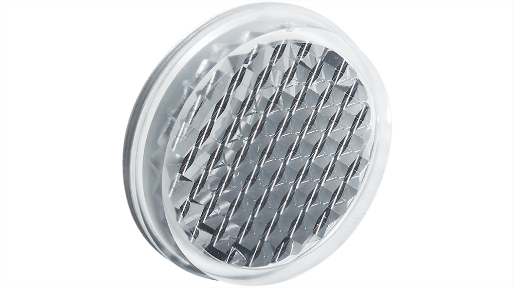 Riflettore rotondo innestabile per piastre metalliche, sistema di montaggio a innesto, materiale PMMA/ABS, tipo accessori: riflettore, serie PL, forma rotonda.