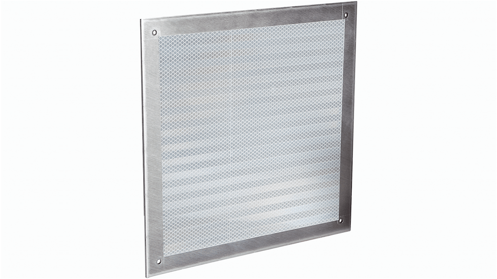 Riflettore Sick con piastra riflettente in nastro riflettente "diamond grade", dimensioni 330 mm x 330 mm, montaggio a vite, materiale in alluminio. Tipo accessori: riflettore, serie PL. Progettato per applicazioni industriali.