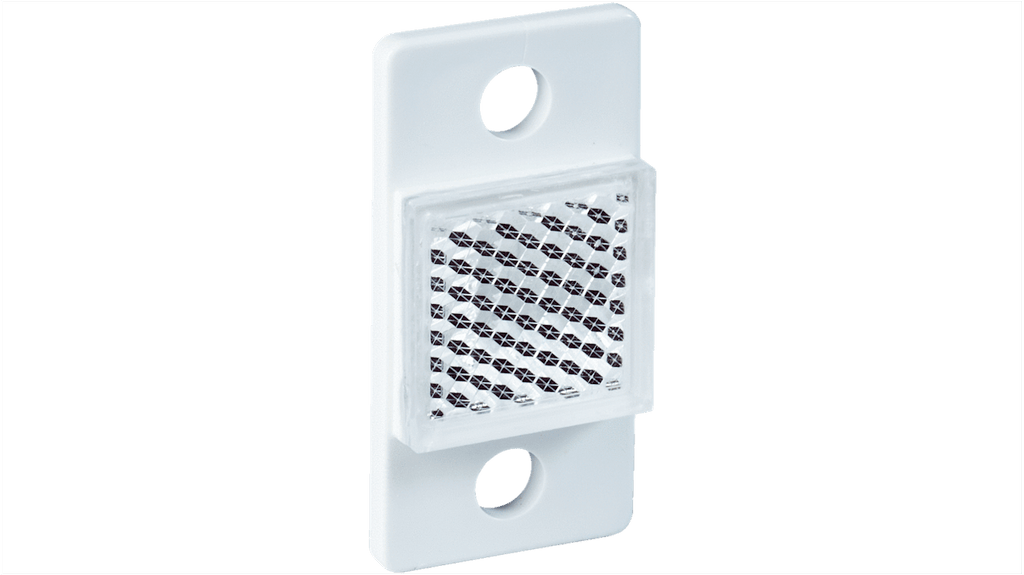 Riflettore rettangolare per uso con sensori, codice PL7F, marchio Sick, montaggio a telaio, foro di montaggio 3,2 mm, area riflettente 9 x 9 mm, materiale PMMA/ABS, temperatura operativa da -30 a +50 gradi Celsius, grado di protezione IP 67. Progettato per il rilevamento di materiale chiaro, consente integrazione rapida nei sistemi esistenti.