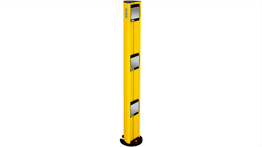 Sensore di sicurezza a fascio luminoso, serie PM3S11, 3 fasci, design compatto e robusto, lunghezza 1.185 m, connettore M12, colonne specchianti di varie lunghezze, montaggio indipendente, facilità di regolazione, ampia superficie del riflettore per protezione su più lati, riduzione del lavoro di cablaggio, aumento della produttività grazie all'accesso libero al sistema.