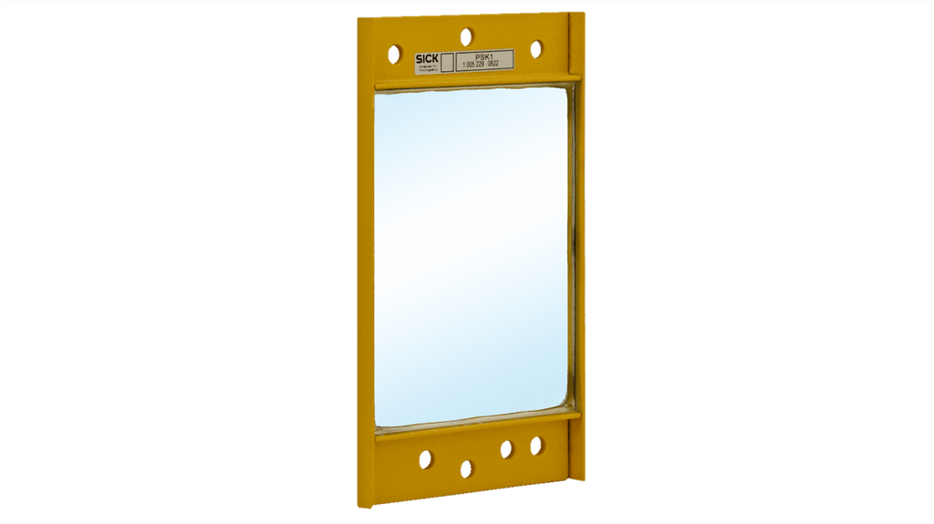 Specchio per uso con sensori, dimensioni 96 mm x 124 mm, realizzato in vetro, progettato per deflessione orizzontale. Tipo accessori: specchio, montaggio a telaio. Serie PSK, applicazione per integrazione rapida e semplice nei sistemi esistenti. Efficienza e affidabilità nelle applicazioni industriali.