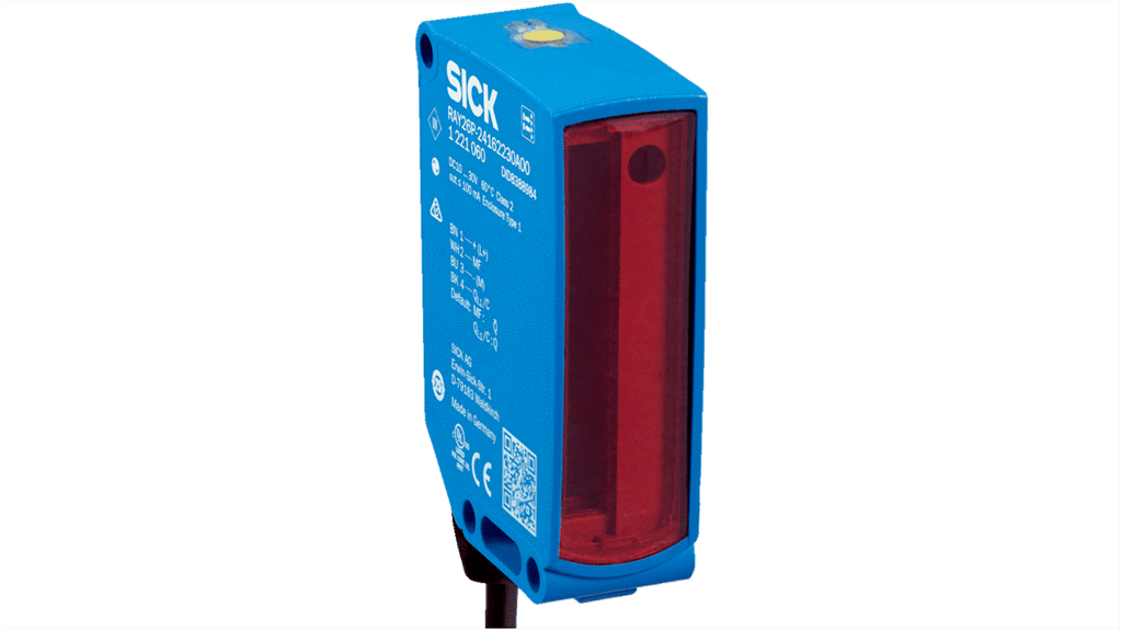 Sensore fotoelettrico rettangolare retro-riflettente, rilevamento fino a 3 m, uscita PNP/NPN, commutazione luce/buio, collegamento elettrico 2 m, 4 fili, cavo, protocollo IO-Link, tensione massima 30V, corrente massima 100 mA, tempo di risposta 3 ms, grado di protezione IP66/IP67, temperatura operativa da -40°C a +60°C, montaggio a pannello, custodia in plastica, certificazione CE e cULus.