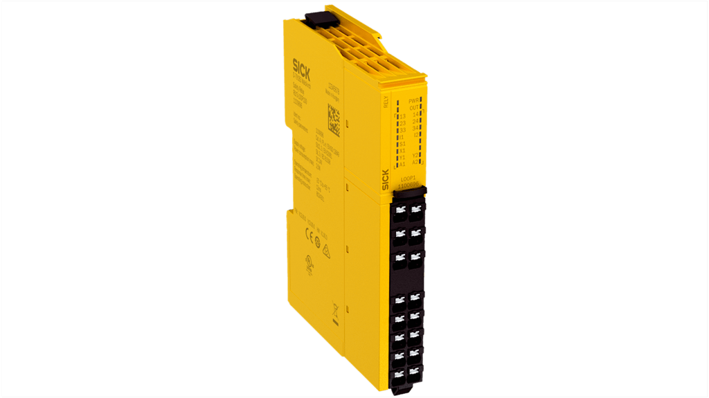 Relè di sicurezza a 2 canali, tensione di alimentazione 24V cc, 2 contatti di sicurezza, design sottile 18 mm, tempi di risposta inferiori a 10 ms, LED di stato, morsetto a molla, configurabile, reset automatico e manuale, categoria di sicurezza 4, livello di prestazioni E, profondità 85.5 mm, lunghezza 124.6 mm, compatibile con collegamento in serie sicuro Flexi Loop.