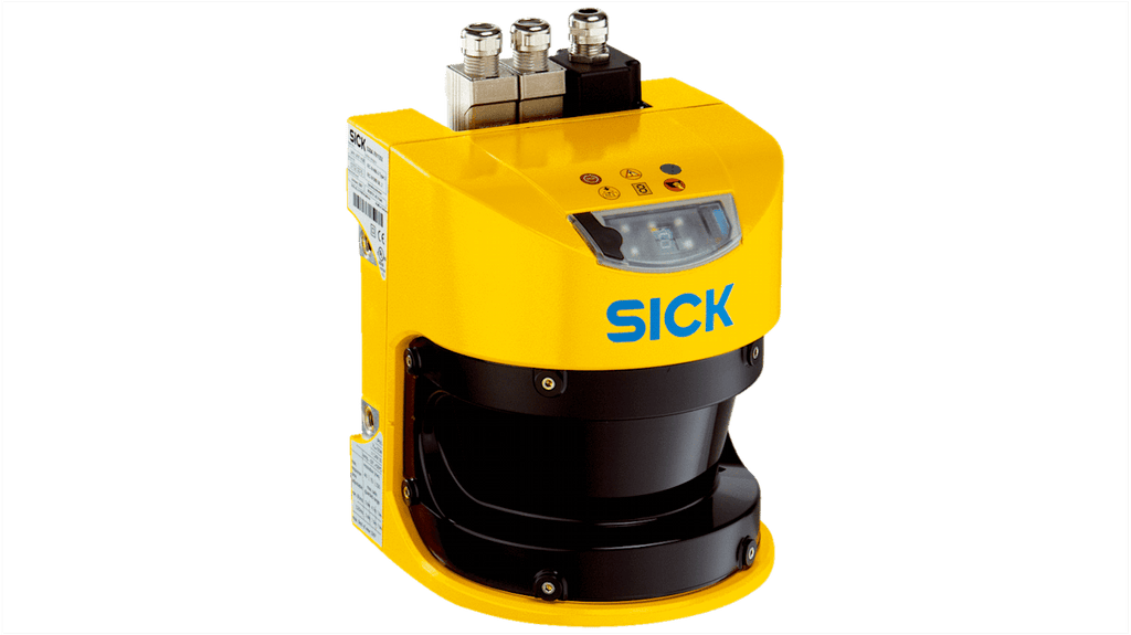 Scanner laser di sicurezza Sick serie S30A, altezza protezione 7 m, distanza massima di rilevamento 49 m, SIL 2 secondo IEC 61508, PL d secondo EN ISO 13849-1, picco lunghezza d'onda 845 nm, tempo massimo di risposta 60 ms, dimensioni 155 x 185 x 160 mm, connessione tramite conduttori in fibra ottica, integrazione nel sistema bus PROFINET IO, memoria di configurazione integrata, monitoraggio simultaneo di 2 campi di protezione.