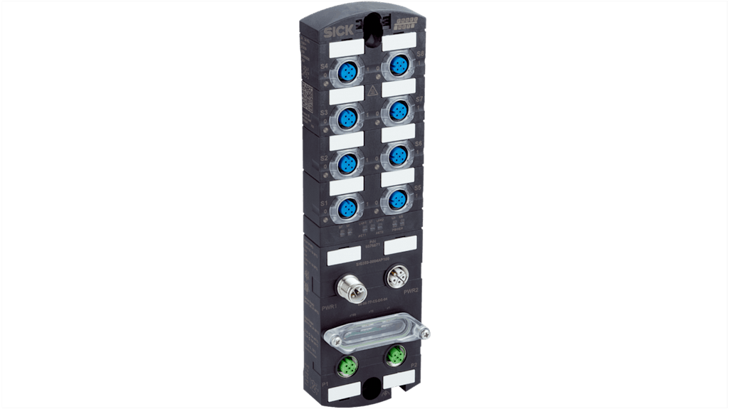 Gateway di integrazione dei sensori, master IO-Link con 8 porte IO-Link M12 a 5 pin, capacità di trasporto di corrente fino a 16 A, max 4 A per porta, alloggiamento robusto IP67, temperatura di esercizio -30 °C a +70 °C, protocolli di rete PROFINET, EtherNet/IP, EtherCAT, configurazione intuitiva tramite web server integrato, compatibile con API REST, MQTT, OPC UA. Materiale plastica, conforme a standard CE.