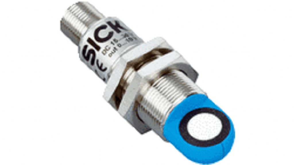 Sensore di prossimità a ultrasuoni cilindrico, tecnologia a ultrasuoni, corpo in metallo, filettatura M18 x 1, uscita NPN/PNP, gamma di rilevamento 20-150 mm, tensione di alimentazione 10-30 V, corrente di commutazione 100 mA, temperatura operativa da -25 a +70 gradi, connettore M12, protezione da sovraccarico e corto circuito, schermatura parziale, frequenza di commutazione 25 Hz. Codice costruttore UM18-21712B212. Marchio Sick.