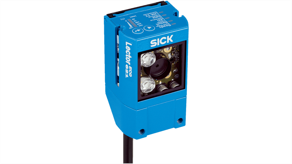 Lettore di codici a barre compatto Sick V2D621R-2MRLBE5, distanza di lettura 9.6 mm, tensione di alimentazione 12-24 V, corrente massima 330 mA, consumo energetico 4 W. Dimensioni 71 x 43 x 35.6 mm, temperatura operativa da 0 a 50 gradi Celsius. Tecnologia ottica con LED, connettore girevole per facile integrazione, design fisso. Algoritmi di decodifica intelligenti, immune alla luce ambientale.