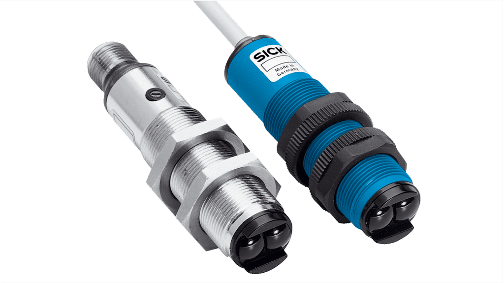 Sensore fotoelettrico cilindrico a retroriflessione, gamma di rilevamento 0,05 a 3,7 m, uscita PNP, connettore M12 a 4 pin, montaggio a pannello, grado di protezione IP67, materiale custodia PBT, sorgente di luce LED, corrente massima 30 mA, tempo di risposta 2 ms, temperatura operativa da -25 a +70 gradi Celsius, standard CE e cURus, dimensione filetto M18 x 1.