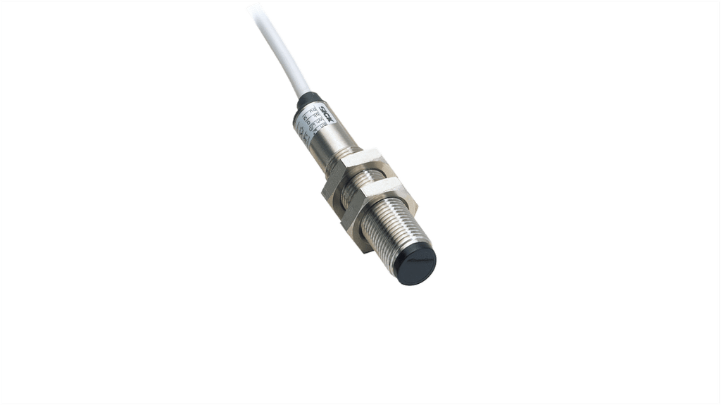 Sensore fotoelettrico cilindrico, tipo prossimità, gamma di rilevamento 115 mm, uscita NPN, tensione massima 30 V c.c., corrente massima 100 mA, tempo di risposta 1,25 ms, grado di protezione IP67, temperatura operativa da -25 a +70 gradi, materiale custodia ottone nichelato, connettore M12 a 4 pin, modalità di commutazione luce/buio, montaggio su cavo, standard CE e UL.