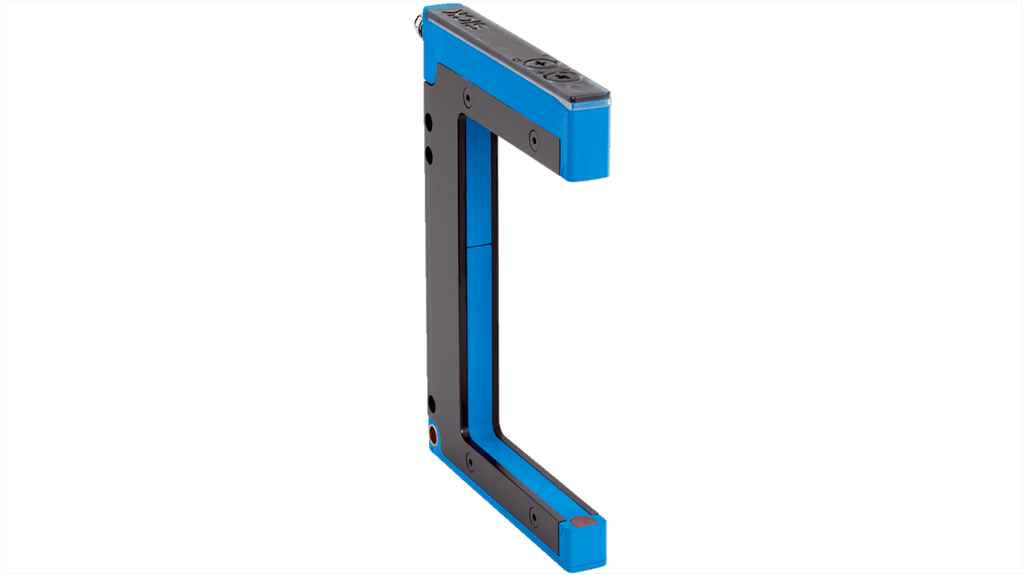 Sensore fotoelettrico a forcella, rilevamento 80 mm, uscita NPN e PNP, grado di protezione IP67, custodia ibrida in plastica ABS e telaio in acciaio al carbonio, temperatura operativa da -20 a +60 gradi, corrente massima 100 mA, frequenza di commutazione 5 kHz, oggetto rilevabile minimo 0,5 mm, regolazione della sensibilità, commutazione luce/buio, montaggio a pannello, connettore M8 a 3 pin.