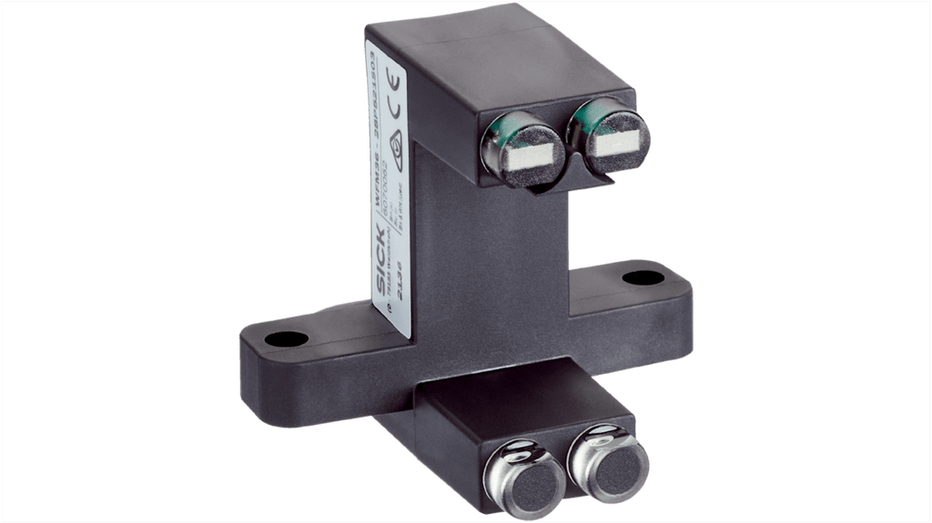 Sensore fotoelettrico a forcella, rilevamento ottico, gamma di rilevamento 36 mm, uscita PNP, montaggio a pannello, grado di protezione IP67, alloggiamento in alluminio, sorgente di luce LED rossa, corrente massima 100 mA, tensione massima 30V, temperatura operativa da -10 a +60 gradi, tempo di risposta 125 microsecondi, connettore a 4 pin. Conforme a CE e registrazione UL. Codice costruttore WFM36-28P521S03. Marchio Sick.