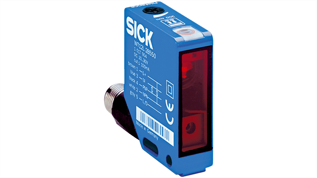 Sensore fotoelettrico rettangolare a retroriflessione, gamma di rilevamento 18 m, uscita NPN e PNP, tempo di risposta 200 μs, corrente massima 100 mA, tensione massima 30V, grado di protezione IP67 e IP69K, alloggiamento in metallo, temperatura operativa da -10°C a +50°C, connettore M12 a 5 pin, conforme a standard CE e UL. Funzione multimodale e diagnostica tramite IO-Link.