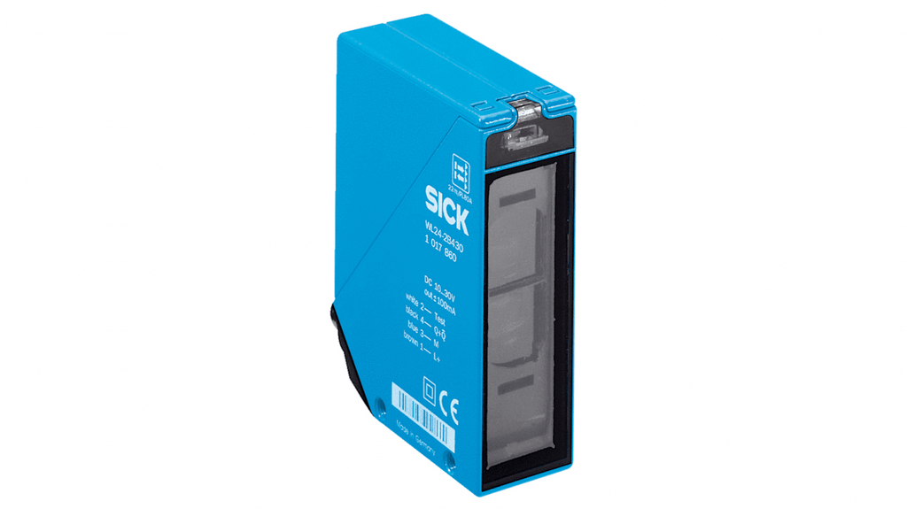 Sensore fotoelettrico rettangolare a retroriflessione, gamma di rilevamento 0,22000 mm, uscita NPN/PNP, robusto contenitore in metallo con grado di protezione IP 69K, elevata immunità alla luce ambientale, connettore a 4 pin M12, opzioni di riscaldamento delle lenti anteriori, varianti con tensione c.c. e c.a./c.c. universale, segnalazione di contaminazione all'uscita allarme. Modello WL24-2B440, marchio Sick.