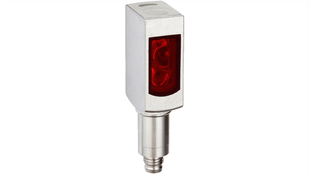 Sensore fotoelettrico rettangolare a retroriflessione, gamma di rilevamento 0 a 5 m, uscita PNP, collegamento elettrico con cavo di 5 metri, sorgente di luce LED, grado di protezione IP67, custodia in acciaio inossidabile, tensione massima 30V, corrente massima 30 mA, tempo di risposta 0,5 ms, temperatura operativa da -30 a +70 gradi, standard CE e cUL.