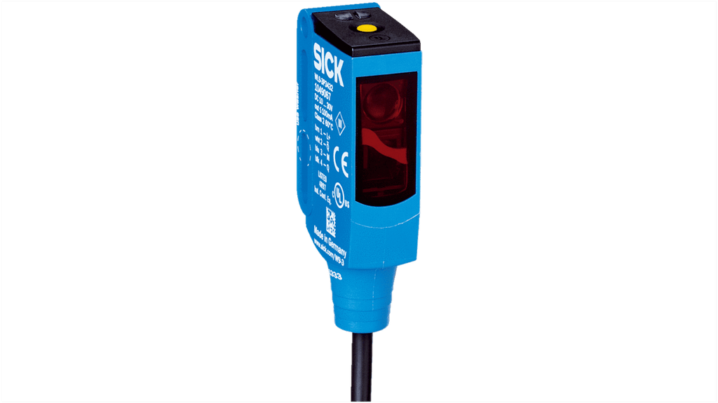 Sensore fotoelettrico rettangolare a retroriflessione, gamma di rilevamento 290 mm, uscita NPN, tensione massima 30V, corrente massima 100 mA, tempo di risposta 0,5 ms, grado di protezione IP66, IP67, IP69K, temperatura operativa da -40°C a +60°C, alloggiamento in plastica VISTAL, collegamento elettrico tramite cavo, filettato per montaggio. Standard CE, cULus, ECOLAB. Codice costruttore WL9-3N1102S07, marchio Sick.