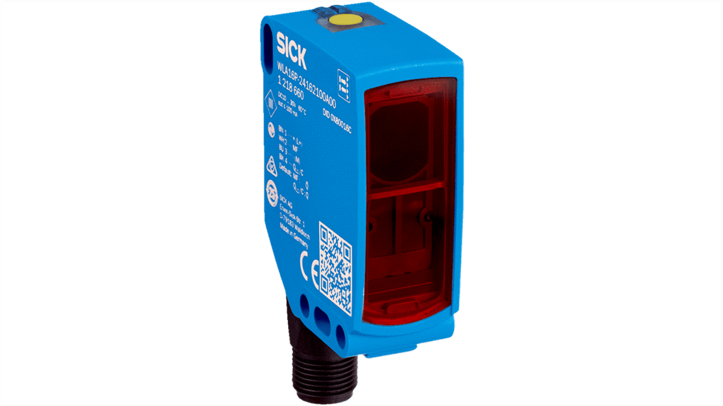 Sensore fotoelettrico rettangolare a retroriflessione, rilevamento da 0 a 10 m, uscita NPN e PNP, con connettore M12. Sorgente luminosa LED Pinpoint ad alta visibilità, grado di protezione IP67, corrente massima 30 mA, tensione massima 30V. Interfaccia IO-Link, tempo di risposta 0,5 ms, temperatura operativa da -40 a +60 gradi Celsius, alloggiamento in plastica, conforme a CE e UL. Codice costruttore WLA16P-24862130A00.
