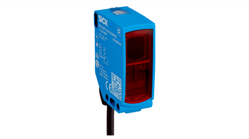 Sensore fotoelettrico rettangolare a retroriflessione, rilevamento 0 a 10 m, uscita NPN e PNP, con connettore M12. Tensione massima 30V, corrente massima 30 mA, tempo di risposta 0,5 ms. Grado di protezione IP67, temperatura operativa da -40 a +60 gradi Celsius, custodia in plastica. Tecnologie integrate: ClearSens, Line Spot, Twin Eye, OptoFilter. Standard CE e UL. Codice costruttore WLA16P-39X22100SZZ.