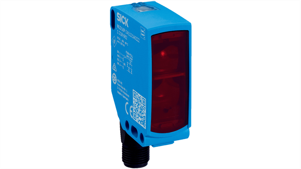 Sensore fotoelettrico rettangolare a retroriflessione, rilevamento fino a 9,5 m, uscita PNP/NPN, con connettore M12 maschio a 4 pin. Tensione massima 30V, corrente massima 100 mA, tempo di risposta 0,5 ms. Grado di protezione IP66/IP67, temperatura operativa da -40 a +60 gradi. Custodia in plastica, montaggio a pannello, conforme a CE e cULus. Tecnologie integrate: TwinEye, LineSpot, ClearSens, OptoFilter.