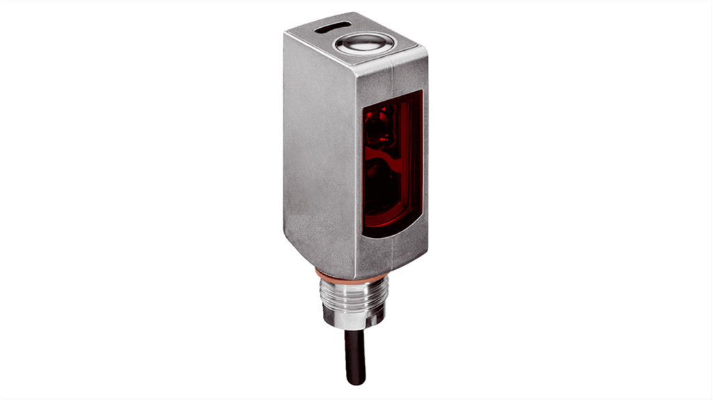 Sensore fotoelettrico rettangolare a retroriflessione, gamma di rilevamento 0 a 5 m, uscita PNP, alloggiamento in acciaio inox, grado di protezione IP 66, IP 67, IP 68, corrente massima 30 mA, tensione massima 30V, tempo di risposta 0,5 ms, temperatura operativa da -30 a +70 gradi, standard CE e cUL, montaggio igienico tramite filettatura M8.