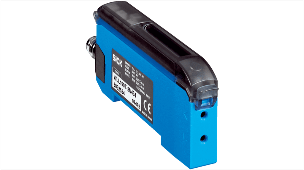Sensore fotoelettrico a fibra ottica, PNP, 4 pin, gamma di rilevamento fino a 4 m, distanza di rilevamento fino a 480 mm, uscita allarme, uscita analogica opzionale, contatore integrato, grado di protezione IP66, tensione di alimentazione 10-24 V c.c., tempo di risposta 0,00025 secondi, frequenza di commutazione 8,333 kHz, dimensioni 10,5 x 34,6 x 71,9 mm, temperatura operativa da -25 a +55 gradi.
