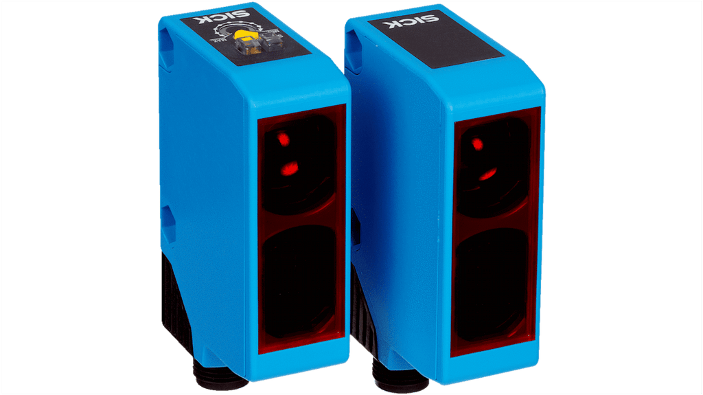 Sensore fotoelettrico rettangolare a fascio diretto, gamma di rilevamento 0 a 50 m, uscita commutazione luce/buio NPN, connettore M12 a 4 pin, luce rossa polarizzata, grado di protezione IP67, corrente massima 100 mA, tempo di risposta 0,0005 secondi, temperatura operativa da -25 a +55 gradi, custodia in plastica, staffa di montaggio in acciaio inox inclusa. Tensione massima 30 V c.c.