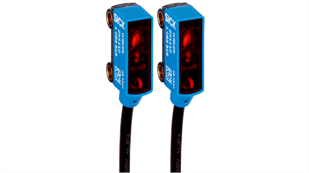 Sensore fotoelettrico rettangolare a fascio passante, gamma di rilevamento 0 a 2,5 m, uscita PNP, tensione massima 30V, corrente massima 50 mA, tempo di risposta 0,4 ms, grado di protezione IP67, temperatura operativa da -25 a +50 gradi, protocollo di comunicazione IO-Link, materiale custodia plastica, serie WSE, standard CE.