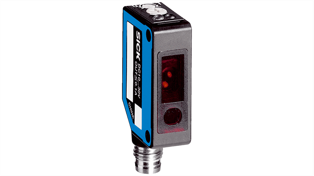 Sensore fotoelettrico a fascio diretto, gamma di rilevamento 0 a 1 m, uscita commutazione luce/buio PNP, frequenza di commutazione fino a 2 kHz, grado di protezione IP67, tensione massima 30V, corrente massima 100 mA, tempo di risposta 0,025 secondi, temperatura operativa da -25 a +55 gradi, contenitore in plastica con fori di montaggio filettati M3, staffa di montaggio in acciaio inox inclusa.