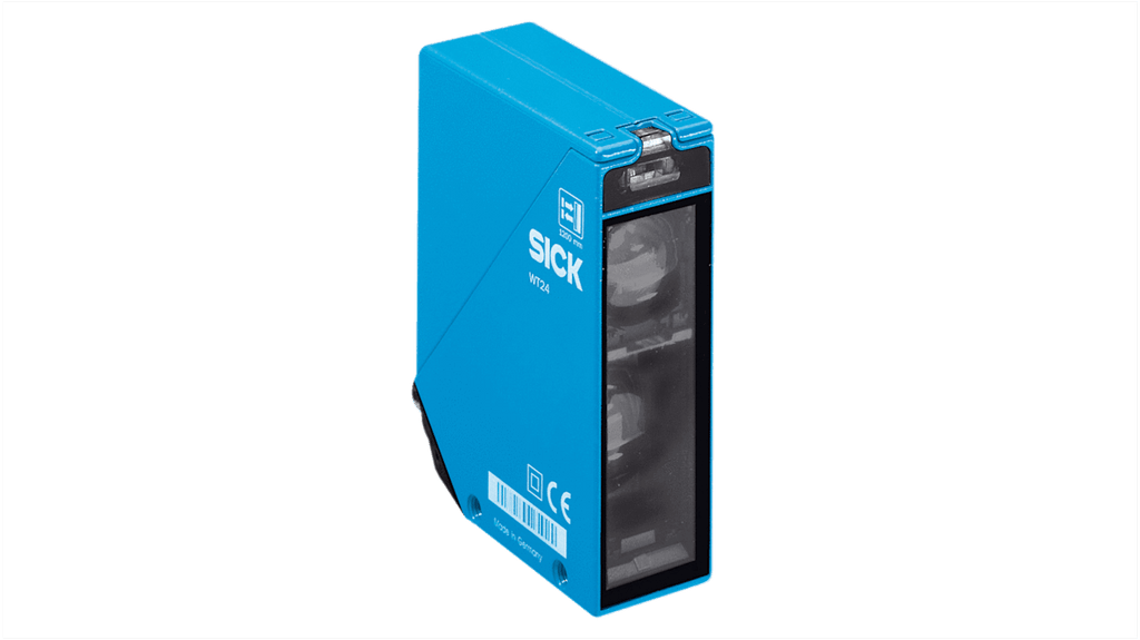 Sensore fotoelettrico rettangolare, rilevamento 1200 mm, soppressione di sfondo, uscita isolata elettricamente, connettore mini a 5 pin, 7/8", grado di protezione IP67, temperatura operativa da -40°C a +60°C, corrente massima 2,5 A, tempo di risposta 10 ms, materiale custodia in plastica, standard CE e cULus, montaggio a pannello. Codice costruttore WT24-2R548, marchio Sick.
