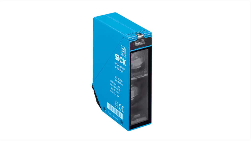 Sensore fotoelettrico compatto, rilevamento da 100 a 1200 mm, uscita PNP/NPN, grado di protezione IP 69K, contenitore in zinco pressofuso, immunità alla luce ambientale, tempo di risposta 500 microsecondi, corrente massima 100 mA, tensione massima 30V, temperatura operativa da -40 a +60 gradi, connettore maschio M12, montaggio filettato, conforme a CE e cULus.