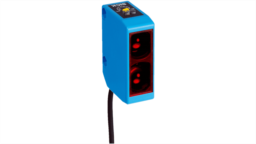 Sensore fotoelettrico rettangolare a soppressione di sfondo, gamma di rilevamento 100 mm a 300 mm, uscita NPN, tensione massima 30 V c.c., grado di protezione IP67, tempo di risposta 0,003 secondi, corrente massima 100 mA, temperatura operativa da -25°C a +55°C, sorgente di luce rossa, connettore girevole M12, staffa di montaggio in acciaio inox inclusa, conforme a CE e UL. Codice costruttore WTB250-2N1131, marchio Sick.